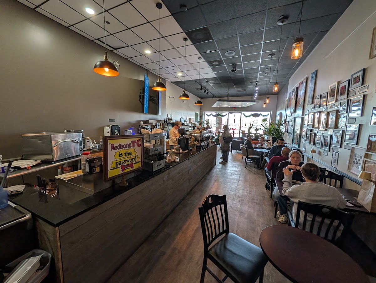 The space hums with a soft, easy energy that seems to encourage lingering conversation or a peaceful moment spent with a book. Natural light filters through large windows, catching the subtle textures of the warm wood and the carefully curated wall art that adds a splash of creativity without overwhelming the calm. Behind the counter, the baristas move with practiced care, their smiles hinting at genuine enjoyment in both craft and connection.